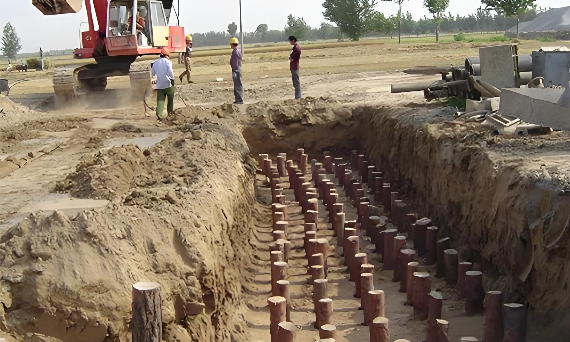 - 砂卵石地基(承載力≥200kPa):入土深度可適當減少,比例 1:0.5~0.6 即可,因土壤自身承載力強,樁體主要起 “拉結” 作用。