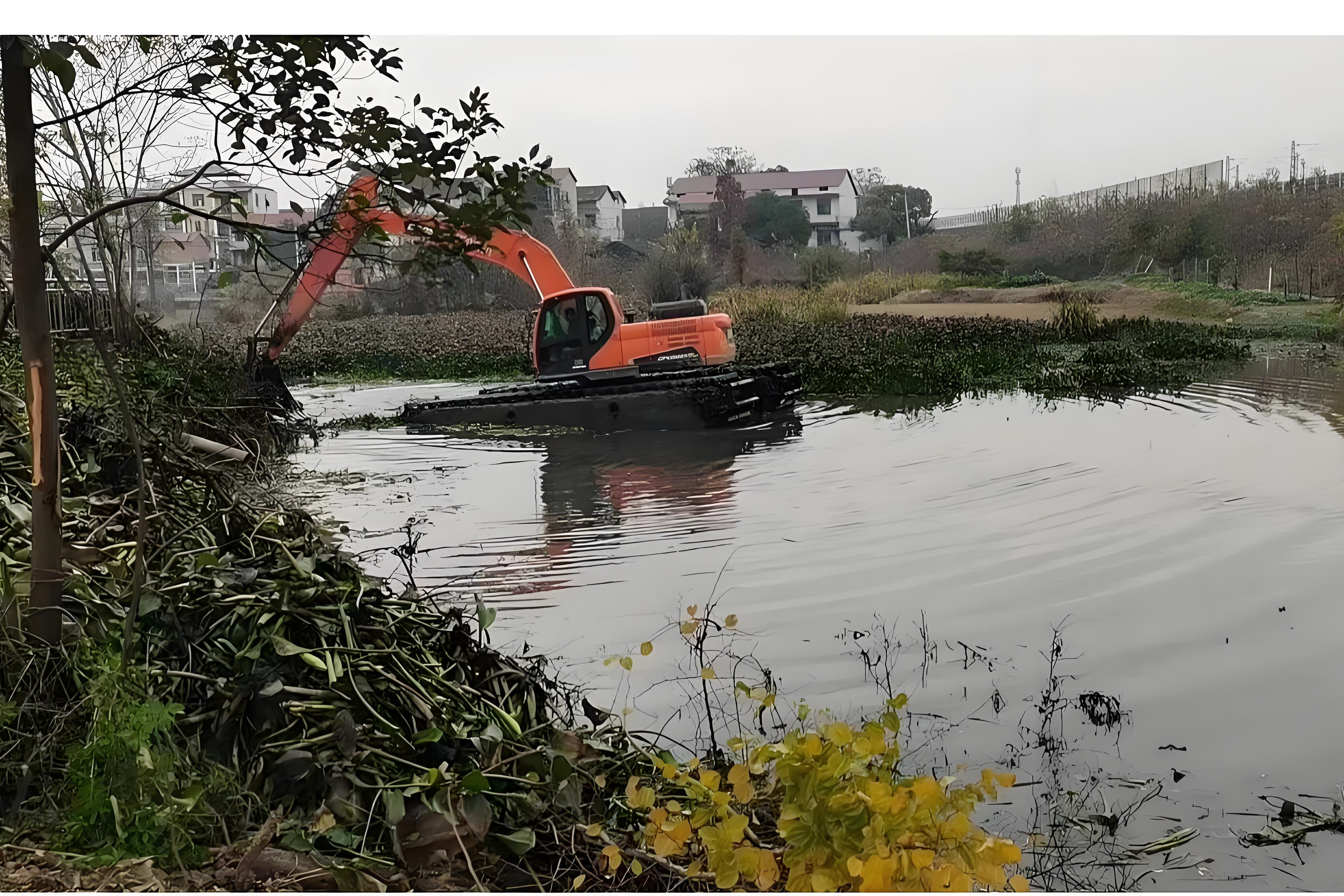 在重慶黔江的河道、湖泊等水域清淤工程中,水上挖機清淤是常用的方式,重慶黔江水上挖機清淤隊在實際操作中積累了不少經驗。但挖機清淤的施工范圍并非能無限擴展,會受到多種因素的限制,本篇文章就來詳細聊聊這個話題。